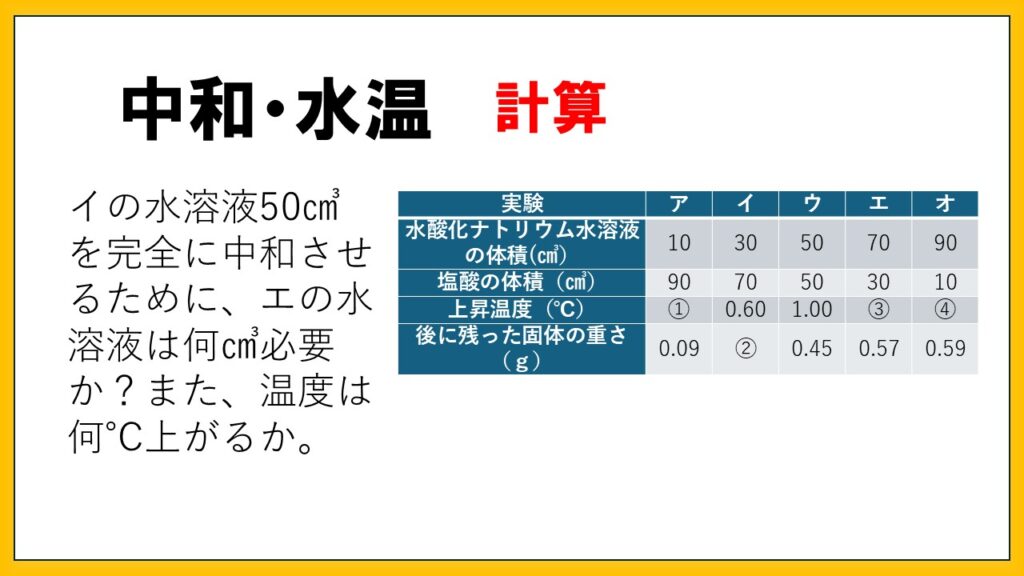 応用:中和熱計算。最高点不明。鶴亀算。